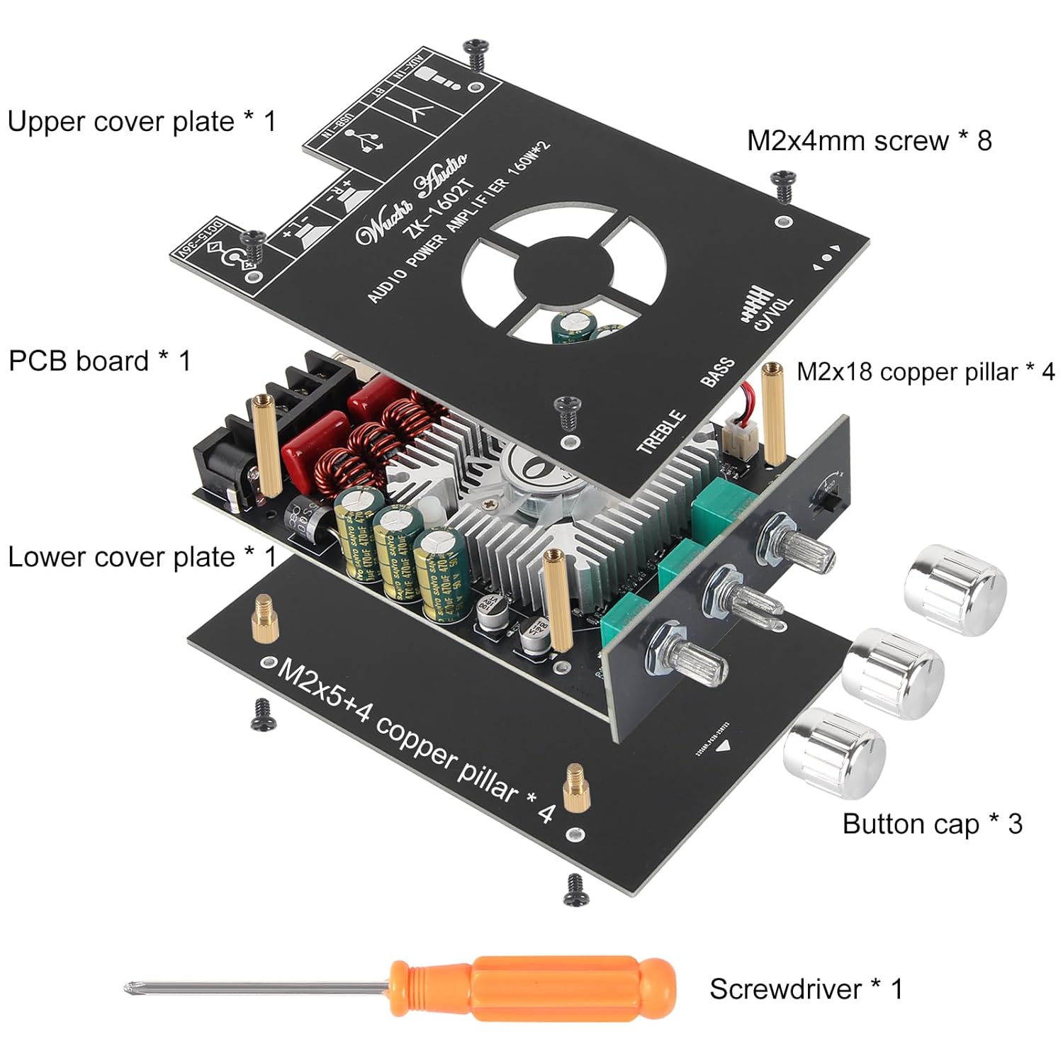 | Included Components | ZK-1602T mini amplifier |