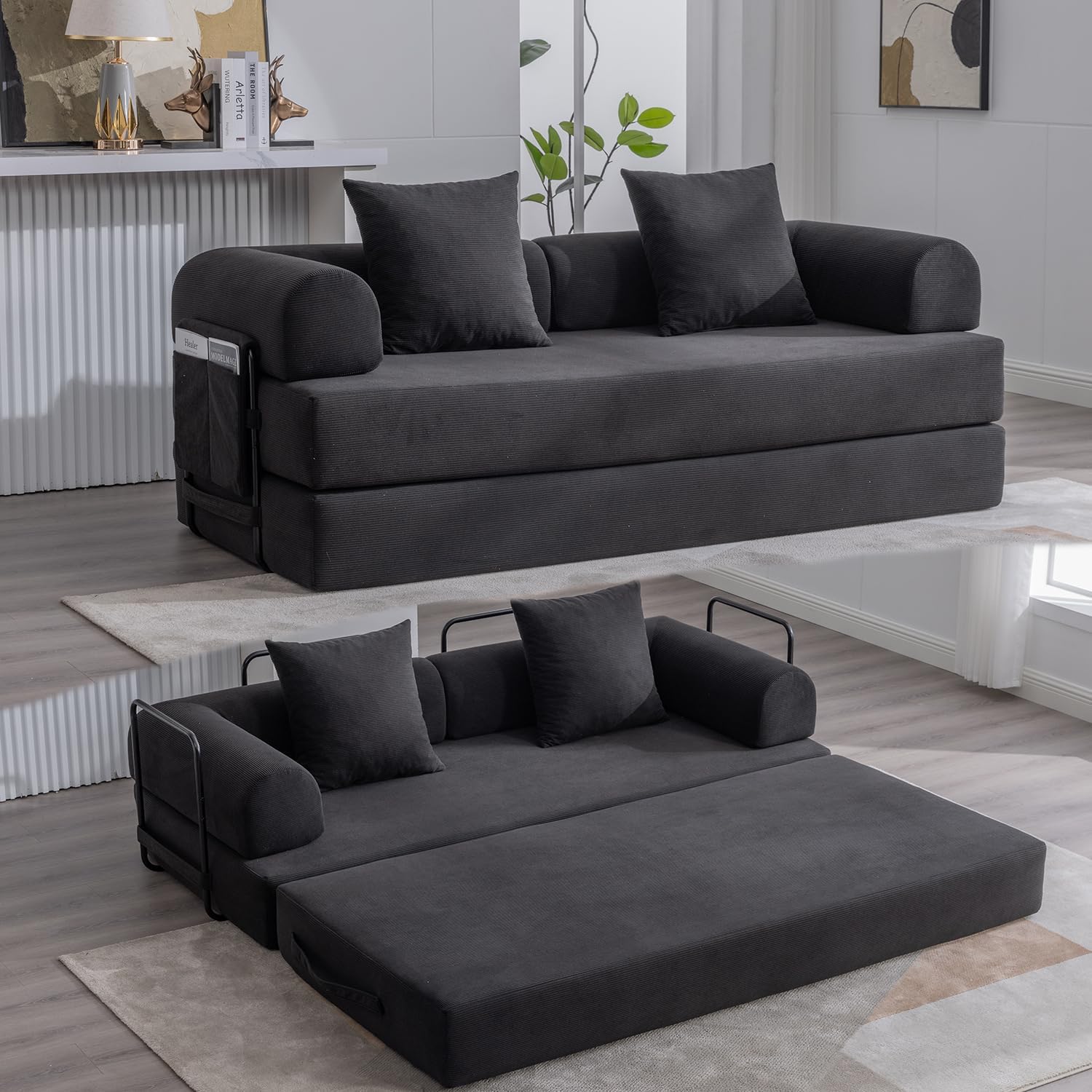 This 5-in-1 convertible sofa bed seamlessly transforms from a cozy loveseat to a spacious sleeper, offering boneless, cloud-like comfort with its corduroy upholstery for your living room, bedroom, or apartment. Weights & Dimensions Upholstery Material:Corduroy Weight Capacity 600 lb Country of Origin China Product size 78.5*37*27in Net weight / Gross Weight 107.14 lb/ 113.76 lb