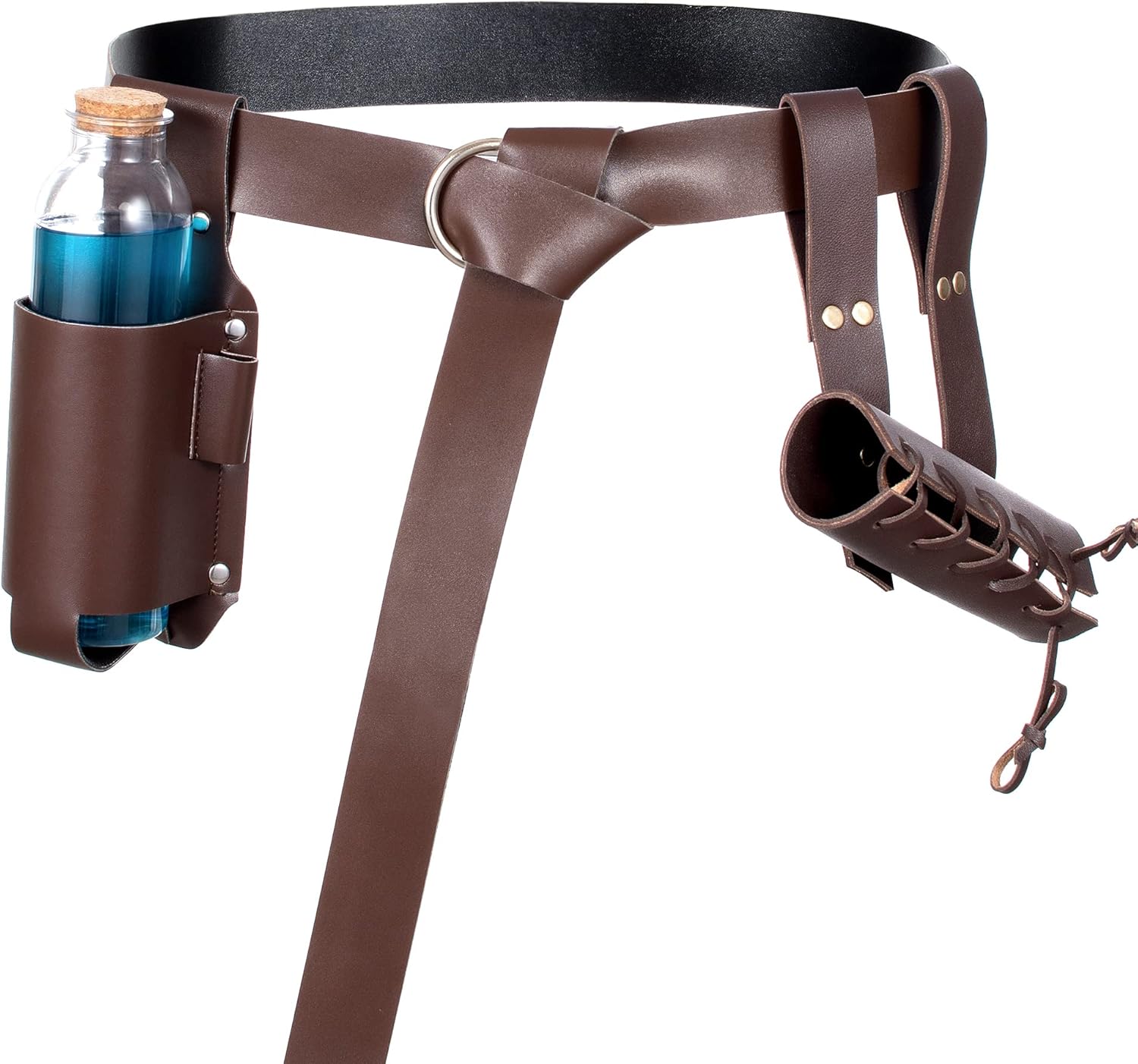 Package includes: Type1~7: PU leather single shoulder belt *1, Shawl scarf *1,PU leather renaissance medieval waist belt *1, PU leather punk gothic bracer*2, Dark magic cork potion bottle and cover *1 ,Medieval renaissance sword frog *1 , 7-piece set. Type8~9: PU leather shoulders belt *1, Shawl scarf *1,PU leather renaissance medieval waist belt *1, PU leather punk gothic bracer*2, Dark magic cork potion bottle and cover *1 ,Medieval renaissance sword frog *1 , 7-piece set. Type10~11: PU leather single shoulder belt *1, Shawl scarf *1,PU leather renaissance medieval waist belt *1, PU leather punk gothic bracer*2, Dark magic cork potion bottle and cover *1 ,Medieval renaissance sword frog *1 , 7-piece set. Unisex medieval knight leather belt shawl men women's steampunk renaissance accessory half shoulder cape scarf buckle bracers sash armlet armband armor shrug retro no belt eyelets renaissance waist belt retro magic cork potion bottle and cover sword frog accessories cosplay party costume Armor is fully wearable and comfortably made.string ties make it fairly adjustable to different arm sizes.