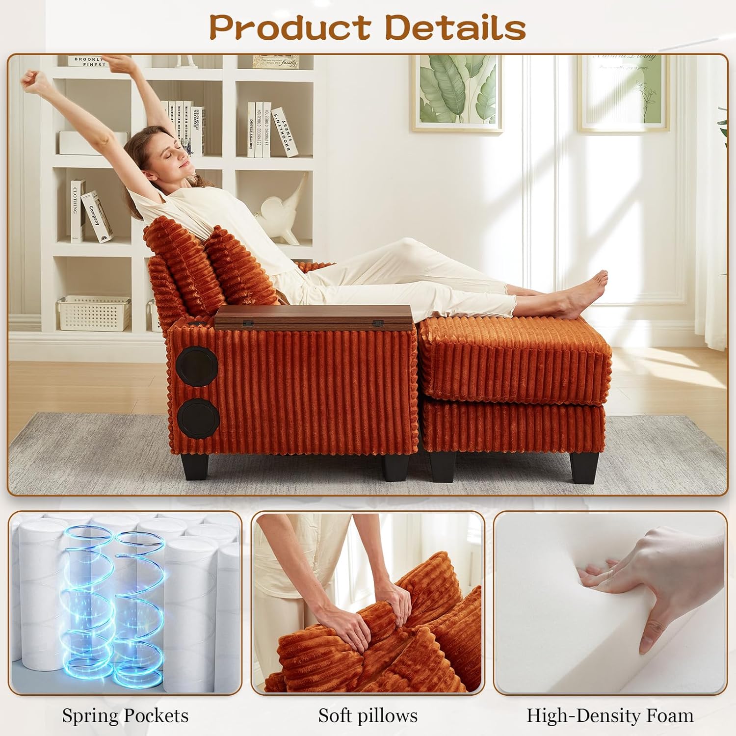 This oversized chaise lounge chair offers extra-wide seating space—perfect for curling up, stretching out, or sharing with pets in your living room, reading nook, or home theater. Product Type: Chaise Lounge Chair Surface Material: Corduroy Fabric Full Assembly Needed: Yes Product Dimensions: Assembled Length (in.):53.25 Assembled Width (in.):42 Assembled Height (in.):32 Suitable Scene: Living Room, Apartment Ultiple Package Reminder: This couch is delivered in multiple boxes and may arrive at different times. If you have any questions about your sofa delivery, feel free to contact us for assistance Please Note: 1.This sofa requires assembly, good things take time, it is more sturdy and durable than chairs that do not require assembly, you can install it according to the steps in our instruction manual, it does not take a long time. 2.Product Care:Dust regularly. Clean gently with a clean, slightly damp cloth. Professional cleaning is recommended. Avoid direct sunlight. Never apply or clean with harsh chemicals. 3.Chromatic Aberration:Manual measurement has been used, there may be some reasonable error. 4.All the pictures are taken by actual samples, slight chromatic aberration may occur due to lighting or display.