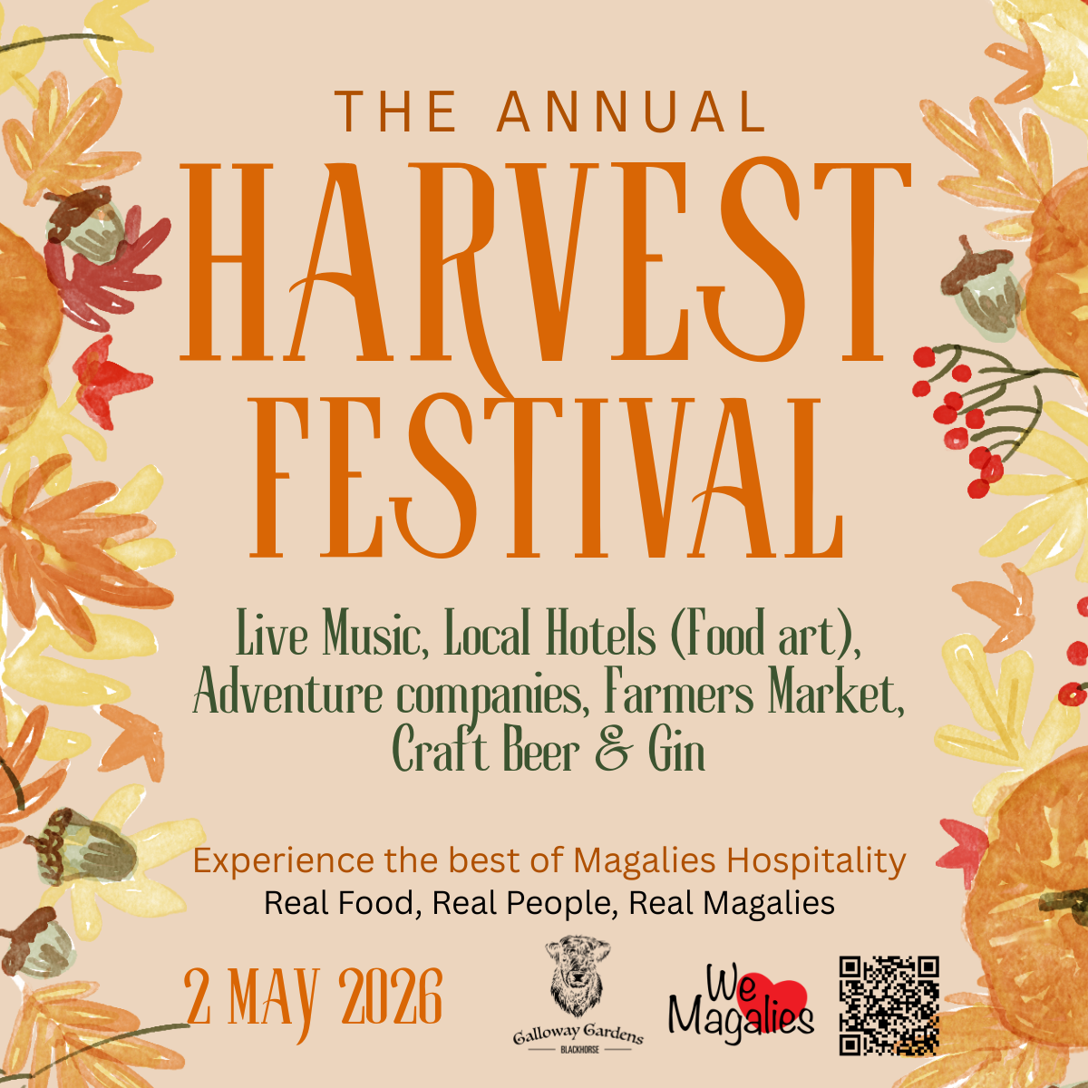 The Harvest Festival is a celebration of everything that makes Magaliesburg special — from its rich farming roots and vibrant local businesses to its warm hospitality, unique adventures, and thriving community spirit. Hosted at Galloway Gardens, this event brings together the very best the region has to offer, including live country music, wine tastings, craft gin, beer, and a curated farmers market experience.